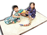 | 新年あけましておめでとうございます。今年もどうぞよろしくお願い致します。さて、良い初夢をごらんになりましたか?1年の始まりに良い夢を見ると縁起が良く、新しい年の素敵な幕開けになりますね。心地良い眠りで「眠りの質」を高めると良い夢を見る事が出来るかもしれません。「安眠は百薬の長」と言いますが、皆さんは寝心地の良いベッドで寝てらっしゃいますか?ベッドはいつでもゴロゴロ出来て便利ですが、案外ベッドのマットレスが柔らかかったりとベッドがあわなくて床におふとんを敷いてらっしゃる方がいらっしゃるようです。(適度な硬さのマットは背骨を伸ばし熟睡を促進します)又、エアコンをつけていても冷たい空気は下の方へ行くので床に寝る方が涼しいのです。子供が小さい頃、夜寝る時にはベッドに寝ていたのにいつのまにか床で寝ているのでベッドから落ちたのかと思っていると、どうもそうではなくて「床の方が気持ち良い」と云うのです。床の方が涼しいとわかっていたのですね。このマットは皆様から御好評のスリッパと同じ素材ですのでサラッとして気持ちが良く汚れてもふけるので便利です。持ち手つきのビニールカバーに三つ折りして入れることが出来るので持ち運びや収納にも良いですね。家でマッサージをしてもらう時やお客さまが泊まられる時にも使えます。今タイは一番涼しい気持ちが良い季節です。このマットをベランダや窓のそばにおいて休めばサバ〜イ・サバ〜イ。さわやかに目覚めそうですね。 |