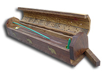 | 日本のアジアン雑貨の店や雑誌ではタイ製の素敵な物がよく紹介されていますがタイバーツにするとびっくりするような値段です。でも日本にいたらそんな値段でも欲しくなってしまいそうな物ばかり。日本への輸出専用にでも作られているのかタイに住んでいるのに中々見かけない物も結構あるのです。この商品も実は先に雑誌で見つけた物なのです。「へーっ、こんな物あるんだ」と思ったのですが、やっと探しあてた時には値段の違いに唖然としました。4倍近くもするんです。何だか得した気分ですね。さあ御紹介しましょう。透かし彫りの美しい木製のこの箱は一見ただの小物入れの様ですが、ふたを開けると箱の横に穴がありスティックのお香を差し込みセット出来る様になっています。又、両脇にはコーンタイプのお香を2個置けます。ふたを閉めると灰が飛び散らなくて良いですね。灰がたまる溝もついています。おまけに箱の下が隠し扉の様に開きスティックのお香を収納出来るのです。ふたを閉めて透かし彫りの間からほのかに香りが漂ってくるなんてオシャレですね。お香入れだけに使うのなんてもったいない。ジュエリー入れにしてこのboxのままプレゼントされてもいいし、筆記用具を入れたり、テーブルに置いてスプーン等を入れたり、玄関に置いて鍵と印鑑入れにも使えそうです。 |